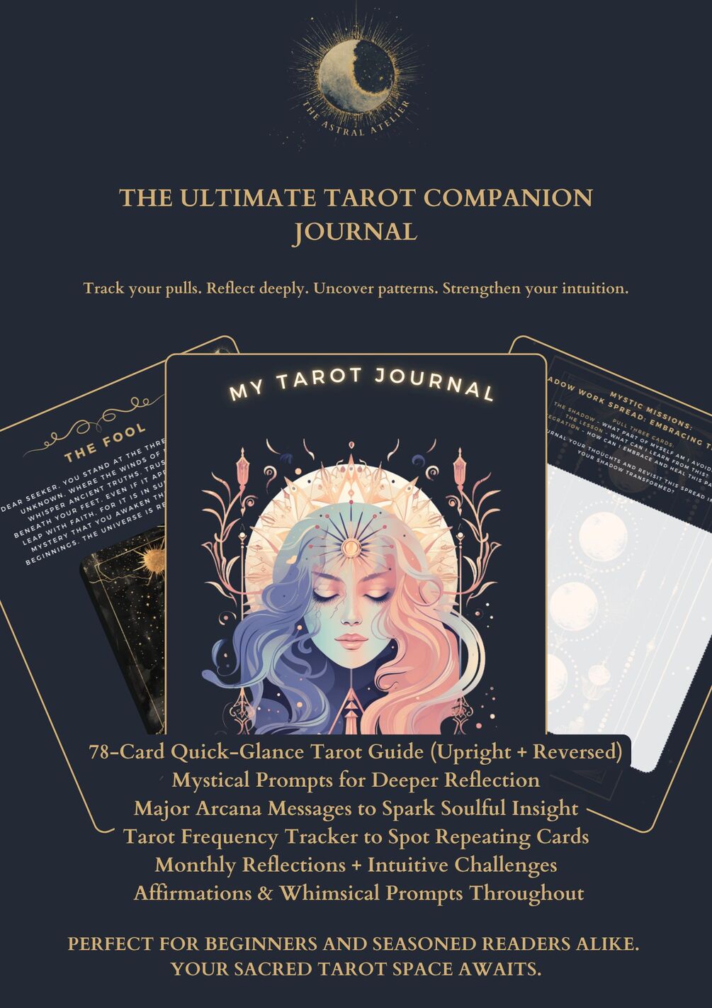✨ A mystical 125-page printable tarot journal to deepen your intuition and track your card journey.